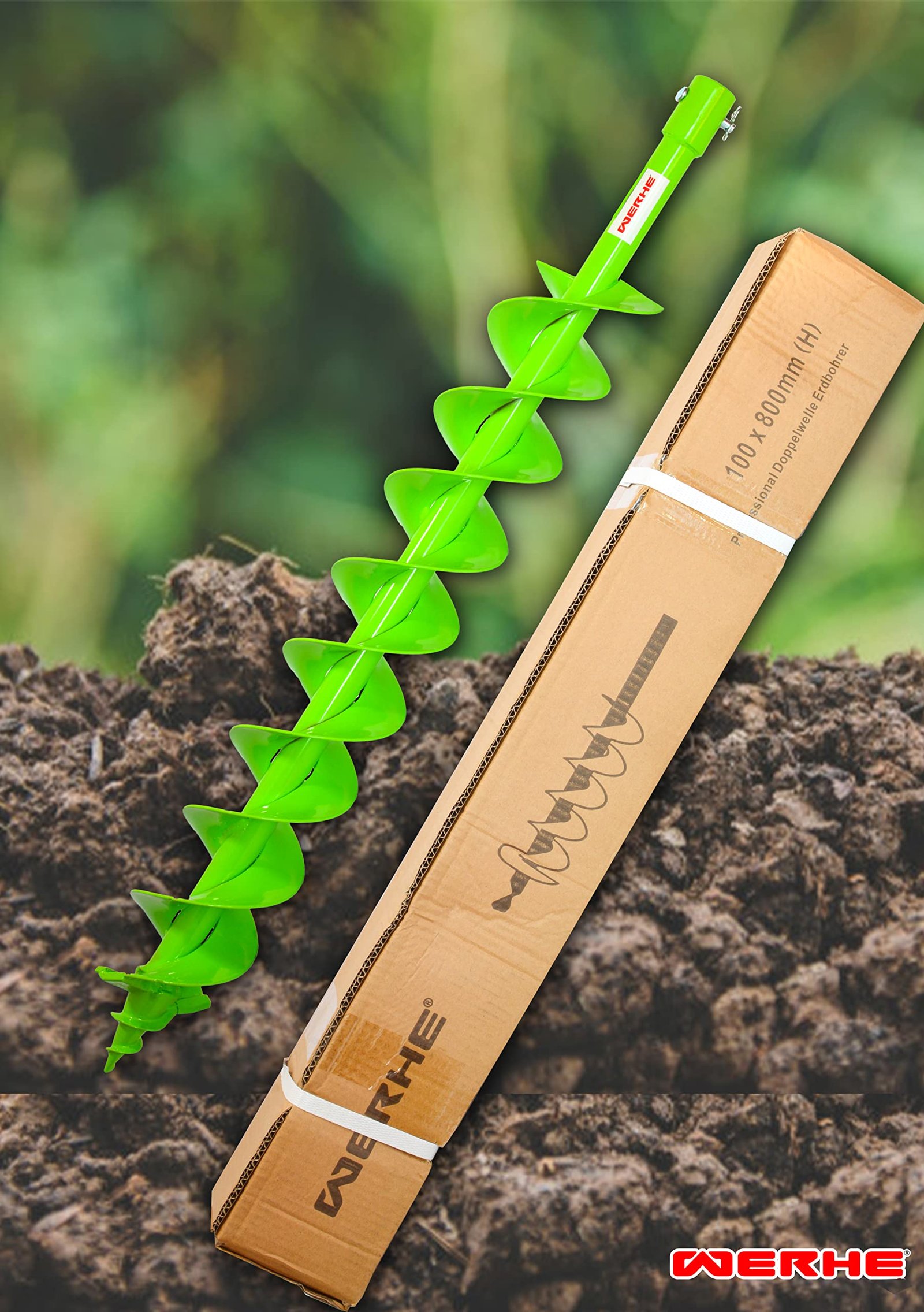 WERHE® Profi Bohrer VollStahl, Erdbohrer für bohrmaschine 100 mm Doppel-Welle extrem robust mit Hex Adapter – Pfahlbohrer Brunnenbohrer präzise Bohrspitze.