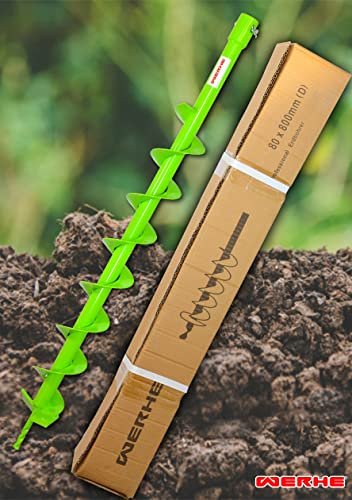 WERHE® Profi Bohrer VollStahl, Erdbohrer für bohrmaschine 80 mm extrem robust mit SDS Max Adapter – Pfahlbohrer Brunnenbohrer präzise Bohrspitze.